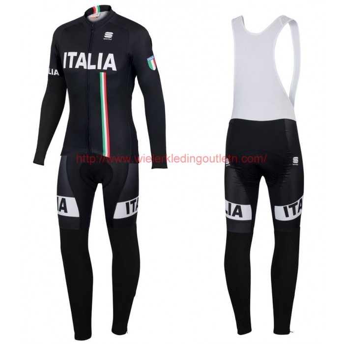 2016 Sportful Italy IT zwart Winter Set Wielerkleding Wielershirt lange mouw+Lange fietsbroeken Bib 213733