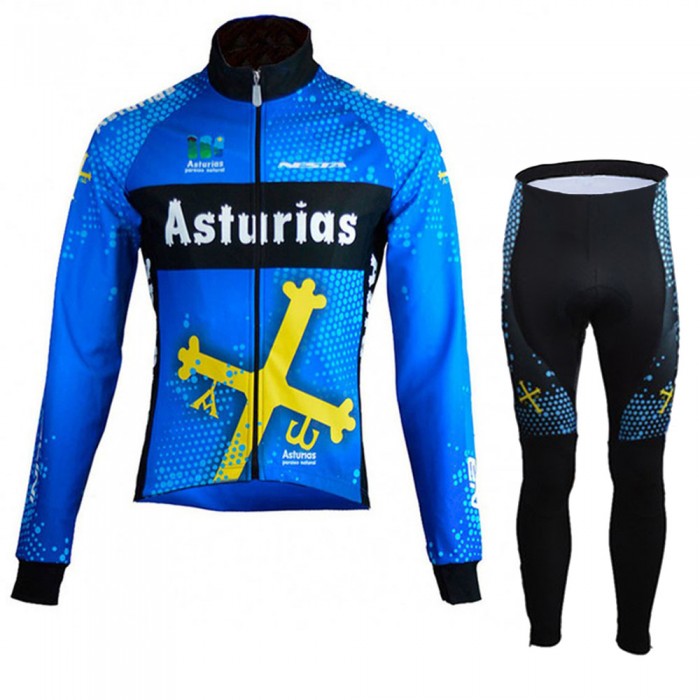 Winter Fleece Asturias Pro Team 2021 Fietskleding Fietsshirt Lange Mouw+Lange Fietsbroek Bib 20210337