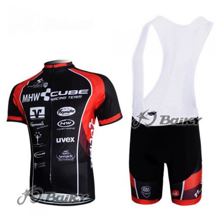 MHW Cube Racing TeamFietsshirt Korte mouwKorte fietsbroeken Bib met zeem Kits rood zwart 4298